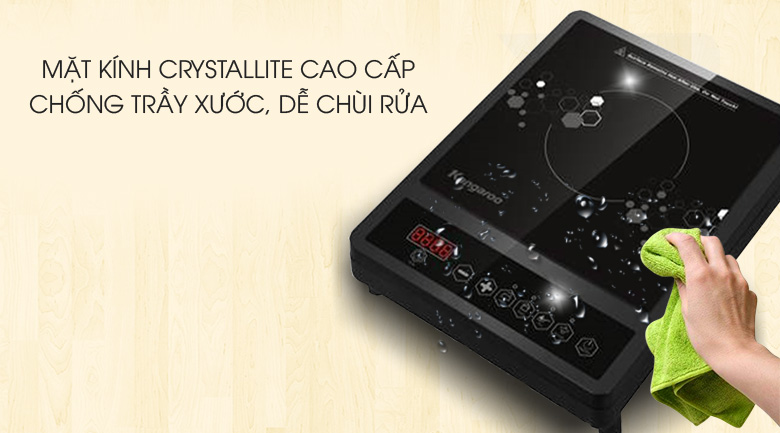 Mặt bếp điện từ Kangaroo cấu tạo bằng kính chịu nhiệt cao, giúp bếp có độ bền cao, luôn sáng bóng,