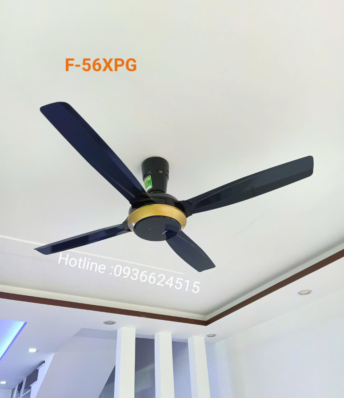 Quạt trần F-56XPG được trang bị 3 cấp độ an toàn: Dây nối an toàn; Khóa nối an toàn; Công tắc ngắt an toàn.