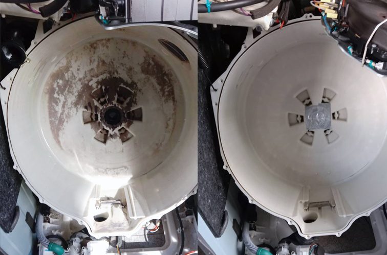 Lồng giặt ,thùng chứa nước và đường ống dẫn nước,là môi trường thường xuyên tiếp xúc với quần áo bẩn, vi khuẩn và bụi .Và theo thời gian, các chất bẩn này sẽ tích tụ bên trong lồng giặt ,thùng chứa nước